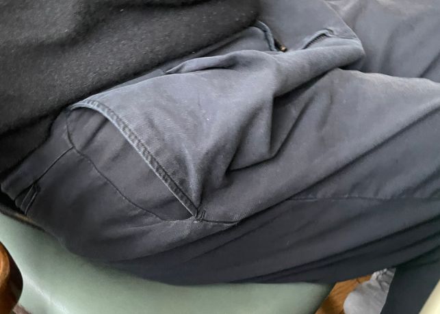 今回の原因のひとつは、あの忌々しい浅いポケットのズボンだ。(はい、私はモノに当たってる)